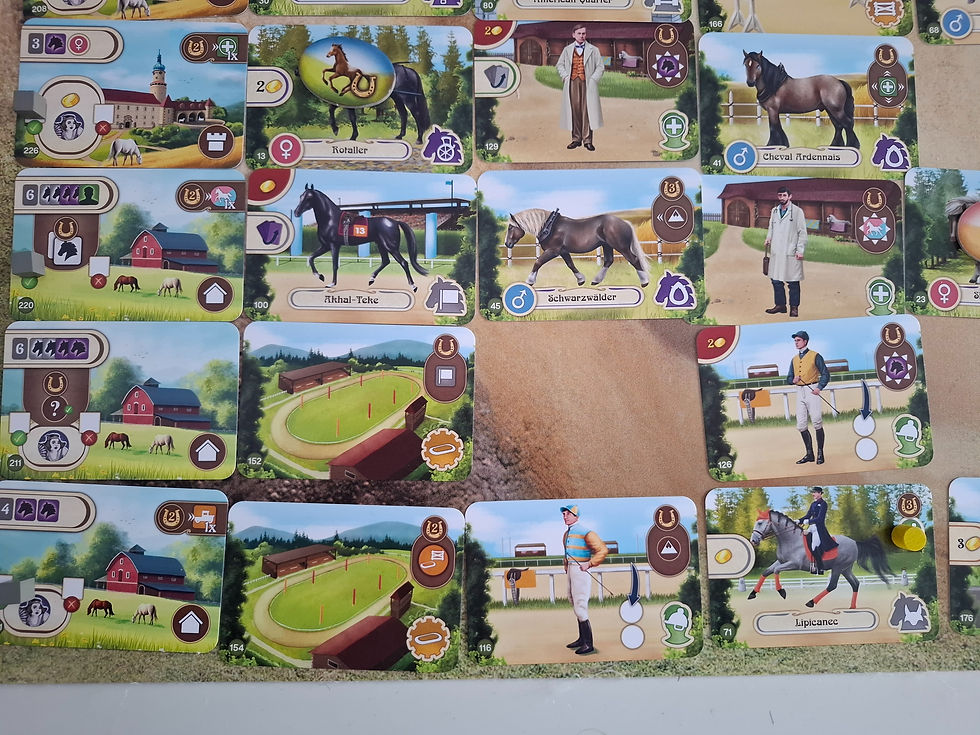 Ein großer Pluspunkt ist es, dass das Spiel auch alleine eine ungeheure Freude macht. Bei mir landet es regelmäßig als Solo-Spiel auf dem Tisch. Die Regeln sind dabei komplett identisch zur Partie mit mehreren Personen. Einzige Änderung ist es, dass ihr zu Spielbeginn vom Sport- und Arbeitspferdedeck solange Karten aufdeckt, bis ihr einen Hengst aufdeckt. Diese beiden Hengste könnt ihr zum Züchten mit euren Stuten nutzen.